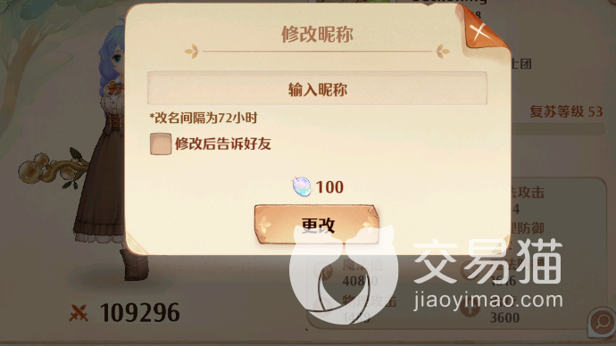 玩家们如果在游戏中想要修改昵称的话,首先登录游戏后点击头像,在昵称旁边有一个羽毛笔的图案,玩家们点击图案后就会提示让玩家们修改了,只要输入新昵称后,在花费100个光珀就可以进行改名了,玩家们还可以选择修改后一键告诉好友。