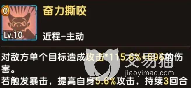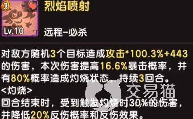 它拥有三大技能:烈焰喷吐,强力撕咬,以及燃烧。火焰喷吐是一个三倍暴击的远程技能,有一定的暴击几率,还有一定的灼伤效果,攻击力很强。它可以在近距离内对目标造成很大的伤害,而且还可以增加目标的攻击力。在施展大招的时候,火焰会增加使用者的攻击力,而且可以叠加。而控制火焰,不仅可以提升大招的杀伤力,还可以让大招命中的数量变得更多,让大招的杀伤力更强。