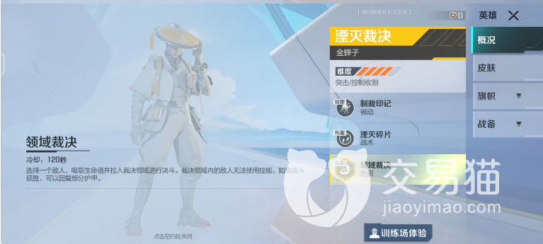 领域裁决是大招,他能够自行选择一个目标进行一对一,被选择的这个对手就不能够使用自己的武器了,只能是一个活靶子,如果决斗取得胜利的话,那么后面可以回复护甲值,这个技能适合处于劣势的时候进行使用。