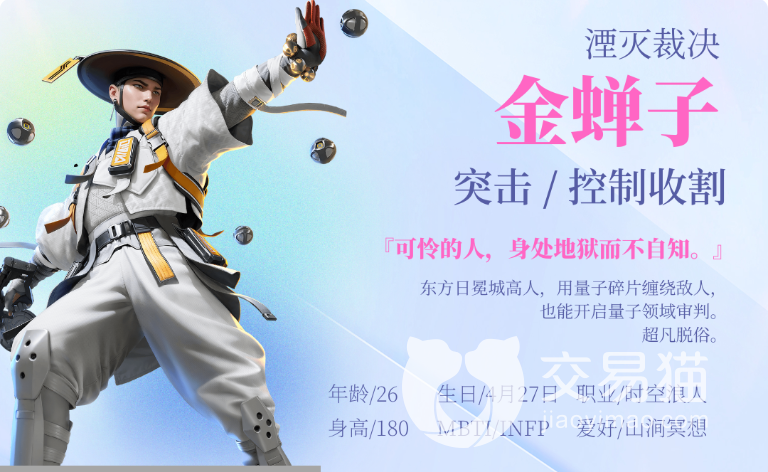 金蝉子来自于东方世界的日冕城,他坚定的告诉世人他就是金蝉子本人,并非他的转世,他和别的角色不太一样,没有公司,也不属于任何的势力,一贯来就是一个独来独往的形象。