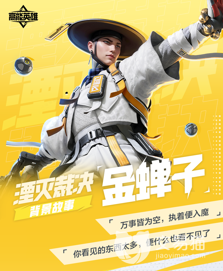 高能英雄当中的每个角色可以说是各具特色,其中有个和尚的角色,比较特别,是目前的十名角色当中形象为光头的一个,高能英雄金蝉子是谁呢,他就是那唯一的一个没有头发的角色,他的口头禅就是“可怜的人,身处地狱而不自知”,接下来将对金蝉子这个角色做一个介绍。