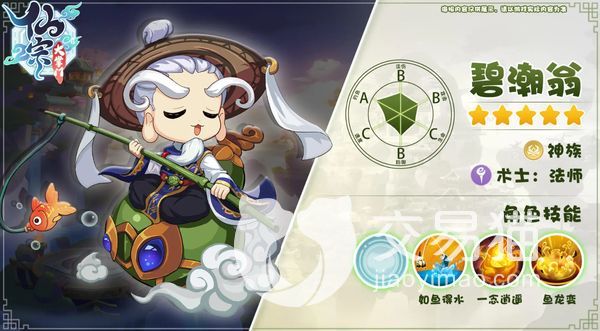 他在游戏中是神族的一个五星角色,游戏中的定位是法师,他在神界是一个酒神,掌管着所有的琼浆玉液,也因为自己是神职,所以生活非常的自在,每天都在和美酒做伴,还号称自己千杯不醉。他在游戏中钓鱼是他的强项,在防御法伤和攻击等方面强度也较好,速度和生命会稍微弱一点。