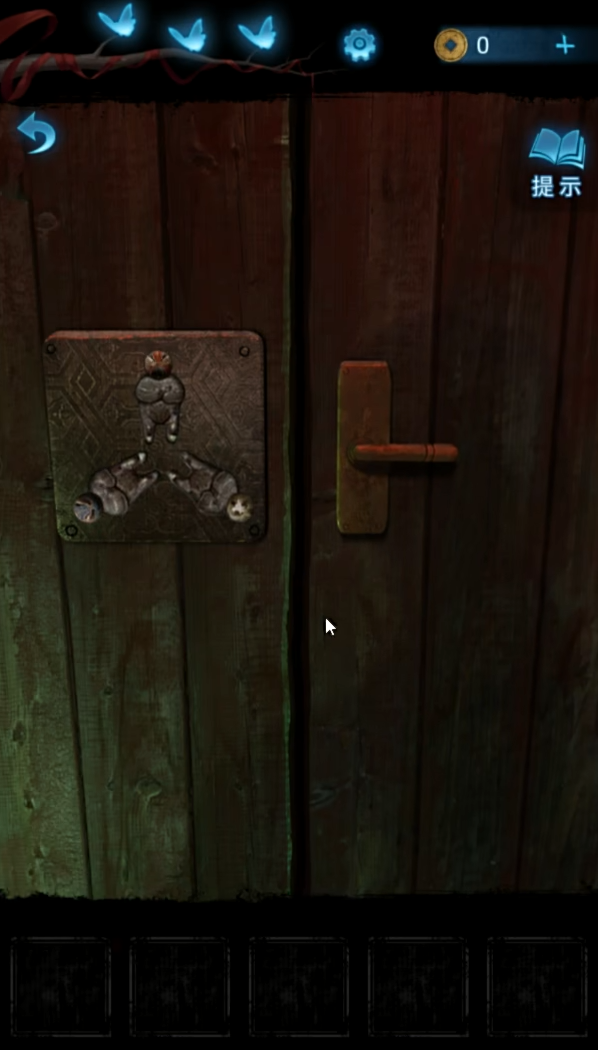 返回戏台,将【小牌子】放在行李箱上得到密码【070117】,打开行李箱之后获得一张【海报】,然后把海报贴在今日剧目栏处,依旧使用图钉固定,返回戏台过剧情,然后点击木偶获得【小雕像】,将三个小雕像放入门锁处就可以打开门了。