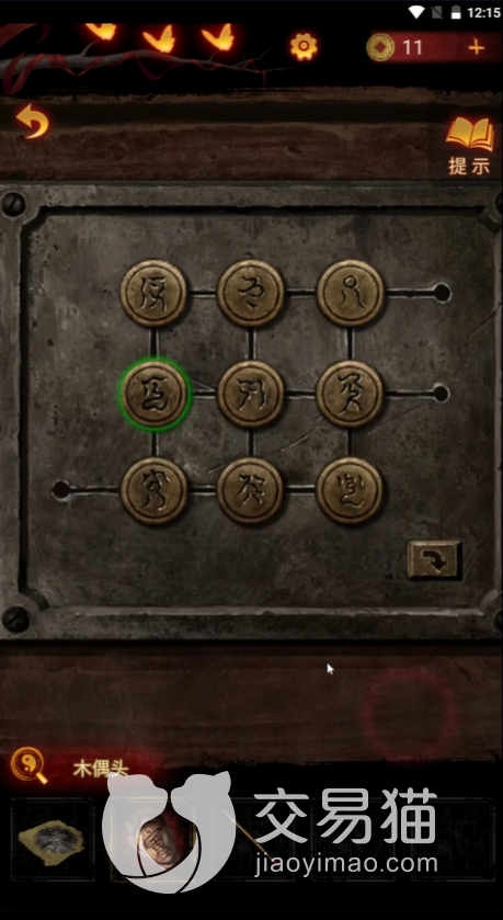 使用钥匙打开房门,探索场景获得【画笔】,右边木桌上查看书籍获得幻术信息并获得【画笔】,查看墙壁上的报纸获得信息线索,然后将抽屉上的木块根据报纸上的线索移动到相对应的位置(如图所示),获得道具【铁钩子】,将木偶头放在神龛里,使用画笔触发剧情,这里会有一个小的惊吓点。点击墙上的洞获得【房顶饰品】,返回石碓处触发剧情,将【房顶饰品】放在魂瓶上面,然后旋转魂瓶的瓶身将图案拼好获得道具【刀币】。
