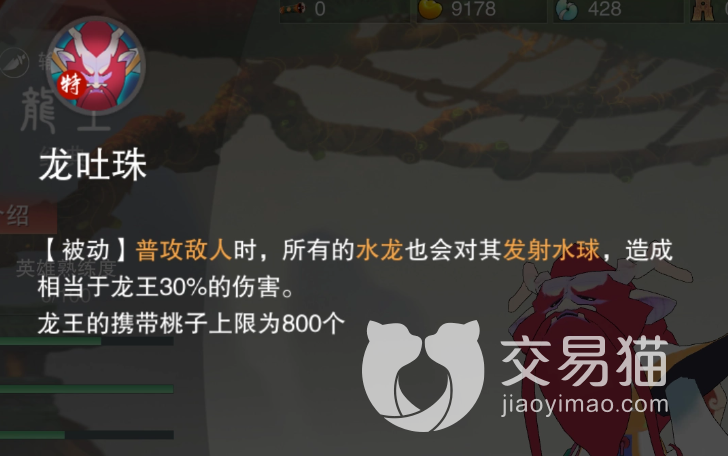 第二种效果则是一个续航层面的增益,龙王可以携带的桃子上限提升到了八百个,这就意味着在实战中它有更多的机会去进行血量的回复,打起持久战时也自然会更加吃香。