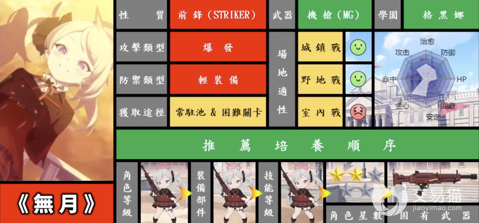 首先推荐大家培养的角色是无月,这个角色的培养优先级很高,因为她有很强的清怪能力,可以帮助玩家轻松推图。她是一个二星角色,在战斗中处于团队阵容后排的位置。她的攻击方式也是以放地雷来攻击,伤害很高。