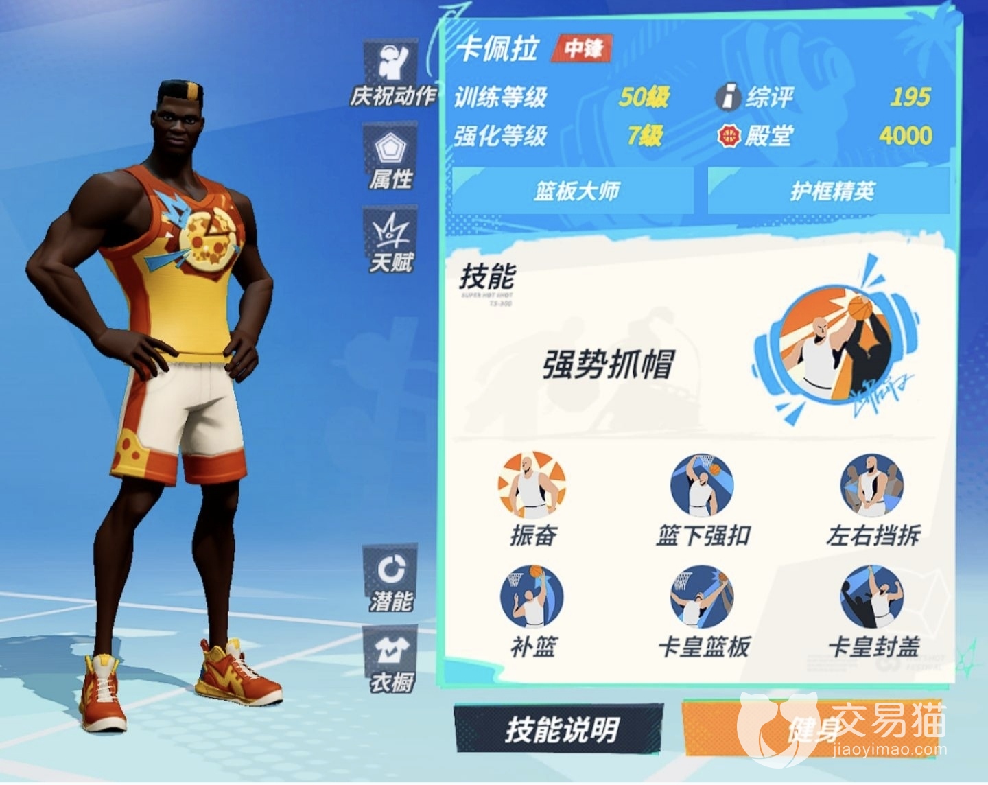 首先为大家推荐的是这款游戏当中的中锋卡佩拉,它的优点在于抓帽能力非常强并且挡拆能力也十分强,想玩中锋的小伙伴们选择他一定不会后悔,它在于中锋当中的强度也算是顶级的了,小前锋的话,推荐新手玩家选择詹皇,这个角色是新手任务时活动送的,同样的也拥有很强的盖帽能力,大招用来打关键球是非常棒的。