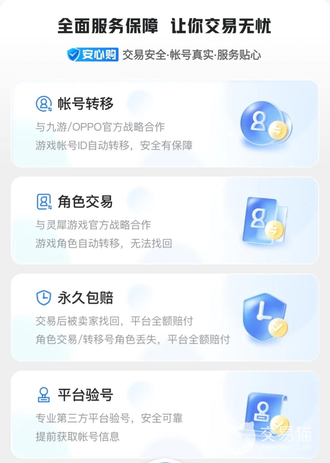以上,是小编的手游账号交易平台推荐,小编觉得,交易猫是真超级良心,这个平台中,会为用户提供非常非常多的福利,小编是个人强烈推荐大家使用。