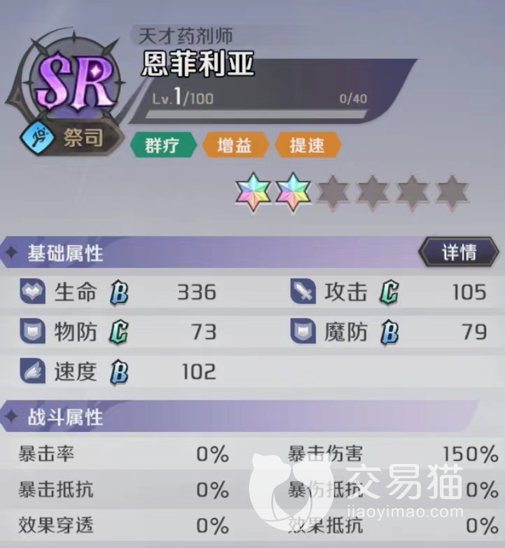 恩菲利亚是一张被低估的SR角色卡,从技能效果上来看,甚至可以和SSR相比,尤其是到后期技能等级提升解锁的额外效果,当然前期技能1级也足够用的。没抽到他的小伙伴只能使用安莉,抽到后的小伙伴就可以改变阵容换恩菲利亚了哦。