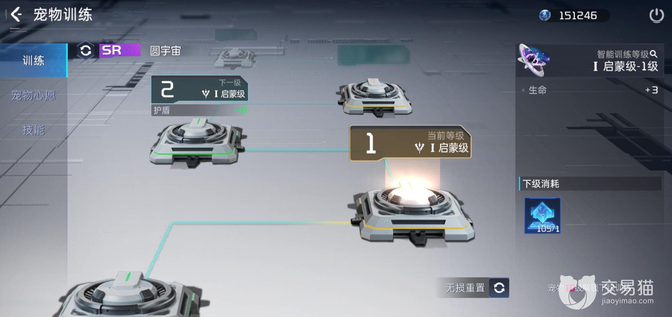 对宠物进行培训可以让它们变得更强,训练消耗作战数据集,该材料可通过副本虚拟战境获取,在商城和战境集训点商店中也有售卖。宠物训练支持无损重置,所以不存在消耗浪费,把当前出战的宠物训练点满就好了。