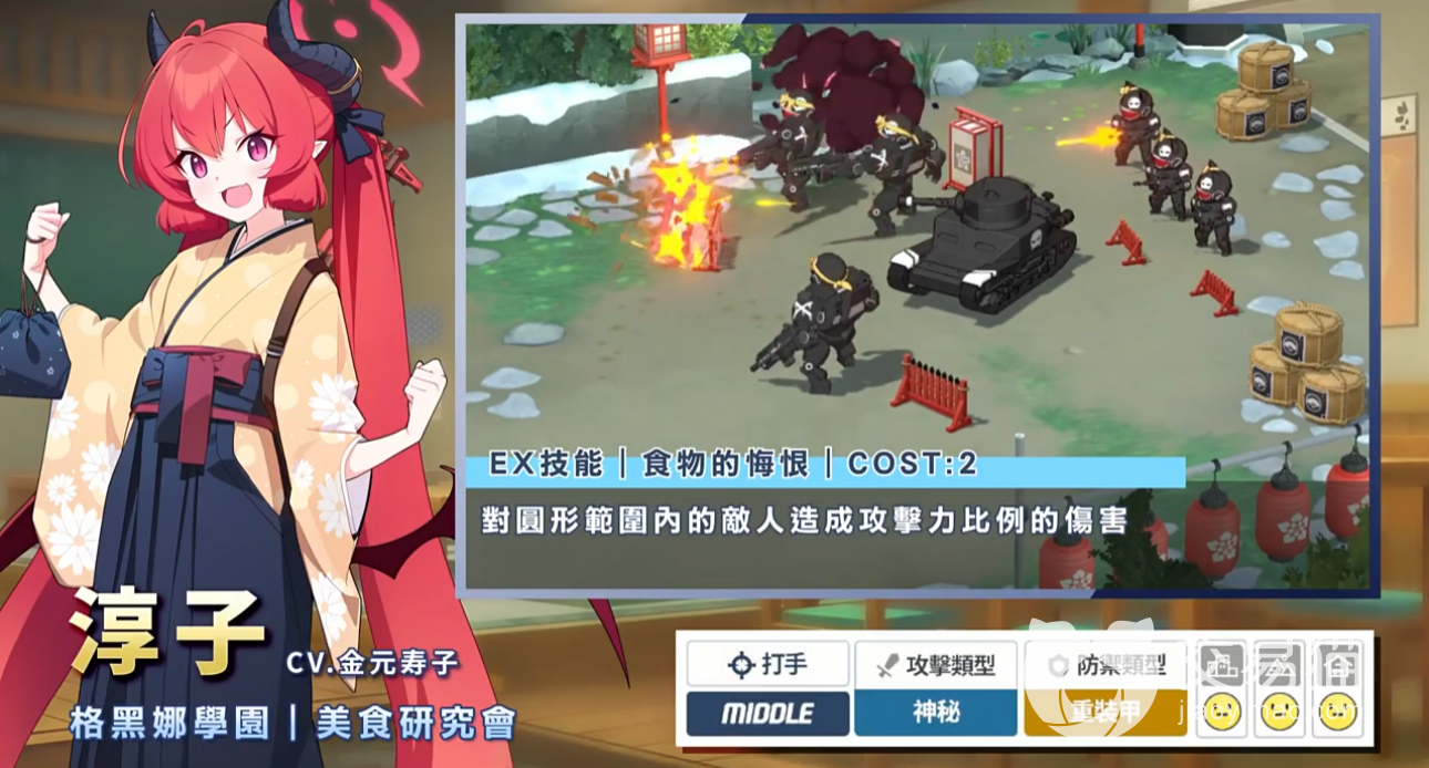 本文对于蔚蓝档案淳子的介绍就都介绍完成了,虽然淳子的初始星级还是比较低的,但是可以对她进行升级呀,本身淳子的技能强度就不赖,如果升级之后在进行使用,那么技能就能够发挥更好的效果了。