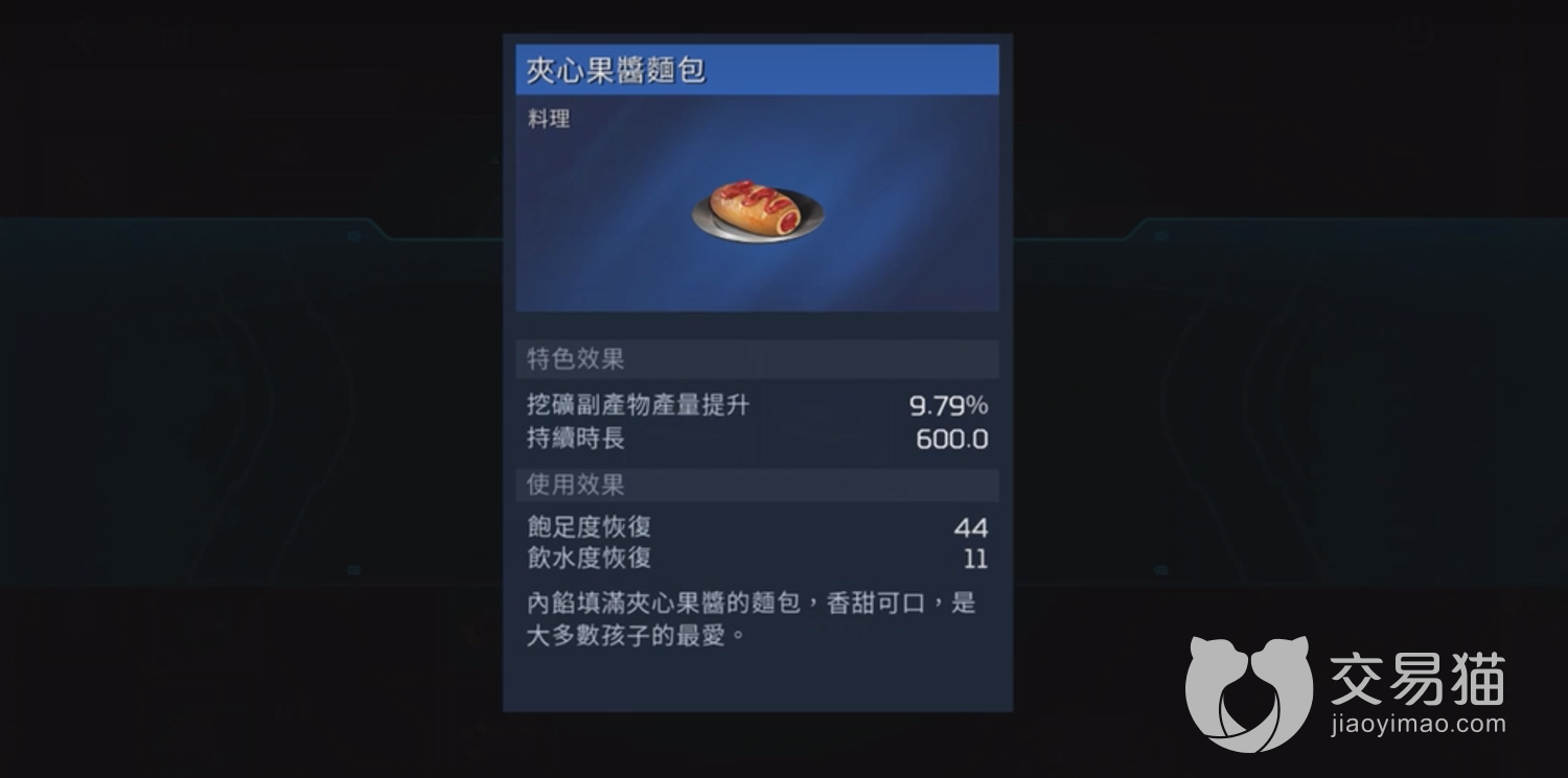 最后建议各位玩家们在挖矿以及采集石头等材料的过程当中,可以先制作一个夹心果酱面包。需要野杏草莓两个小麦即可, 这个是可以增加挖矿和采集纤维的加成,而且比较便宜的一种食物。持续600秒十分钟采集矿物资源产量增加20%,建议各位玩家们在采矿之前吃一个。