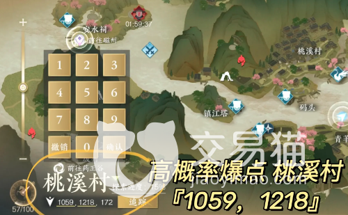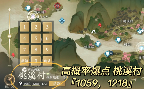 除了龙井异盗窟那个地方可以得到这个背饰以外,还有其他的方法,虽然不是百分百能得到,但是也是有很高的几率爆出来这个背饰。玩家直接点开地图找到桃源村板块输入1059.1218坐标,到达坐标之后,进入桃源村的山洞。这里可以点击游戏页面中间最下面的望气,然后找到三个箱子并打开。