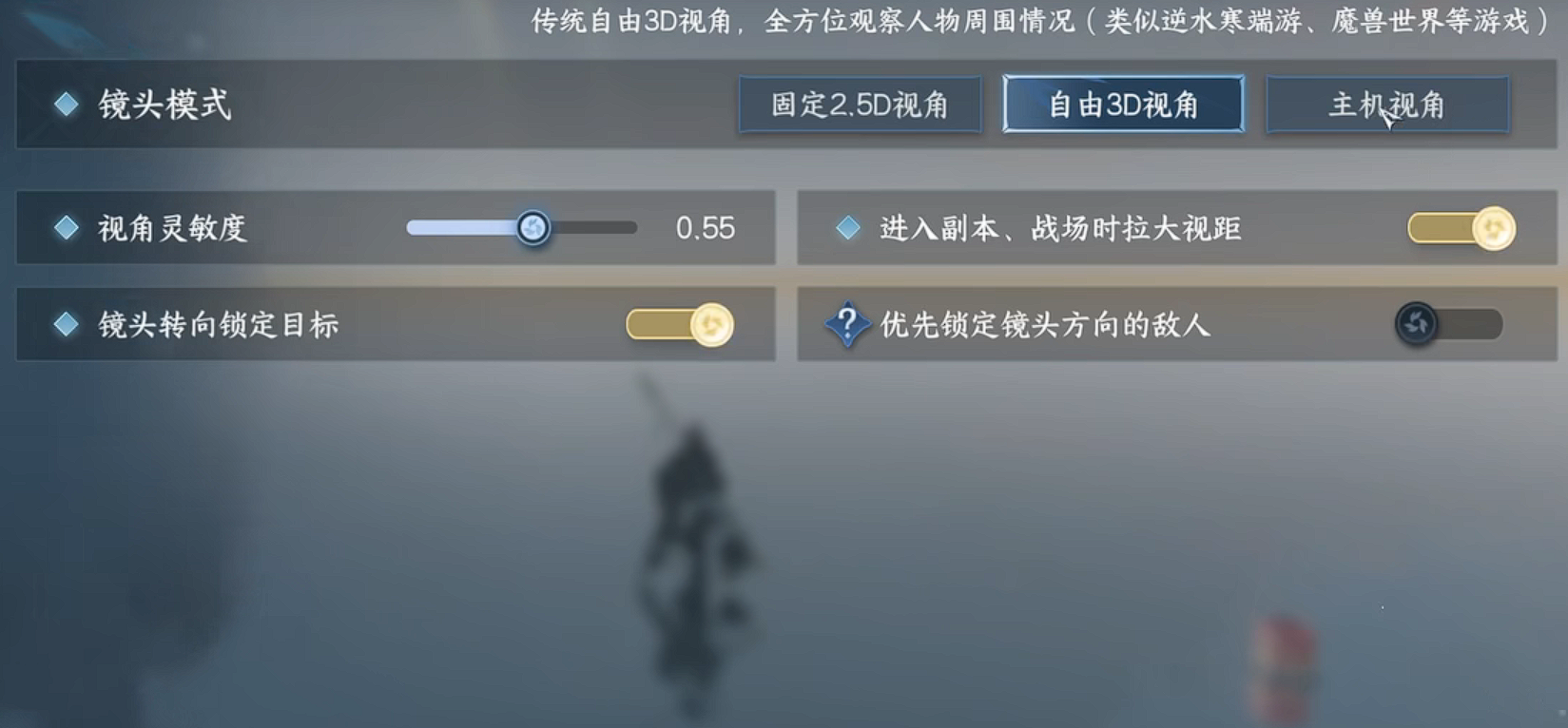 视角方面,能对各位玩家们带来帮助的就是镜头模式的选择。给手机玩家而言,固定2.5d视角和自由3d视角都是很不错的选择。特别是对于一些模拟器玩家而言,建议使用自由3d视角,能够更加流畅的观看战场情况。主机视角其实就是动作模式,不需要按住左右键便可以根据我们自由的视角来移动。对于手机玩家也不太友好,因此只推荐给一些外接手柄玩家们试一试。