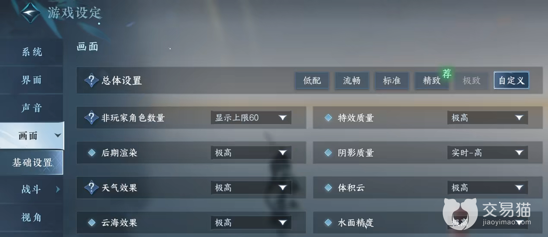 当然,如果玩家们对游戏帧数和流畅度有要求的话,也可以适当的选择下调总体设置。如果说玩家们是用模拟器或者用一些更好的游戏手机机型进行游玩的话,那么则是推荐极致或精致档次的设置。将画面调到这一档次,将充分体验到逆水寒这款高画质的开放世界游戏的魅力。毕竟对于一个手机游戏来说,逆水寒是支持时时光追的,是目前手游中少有可支持光追的游戏。