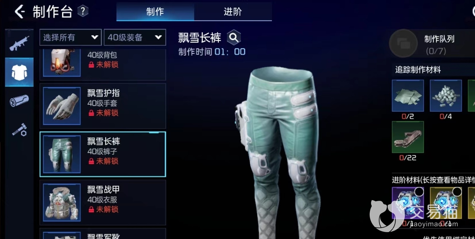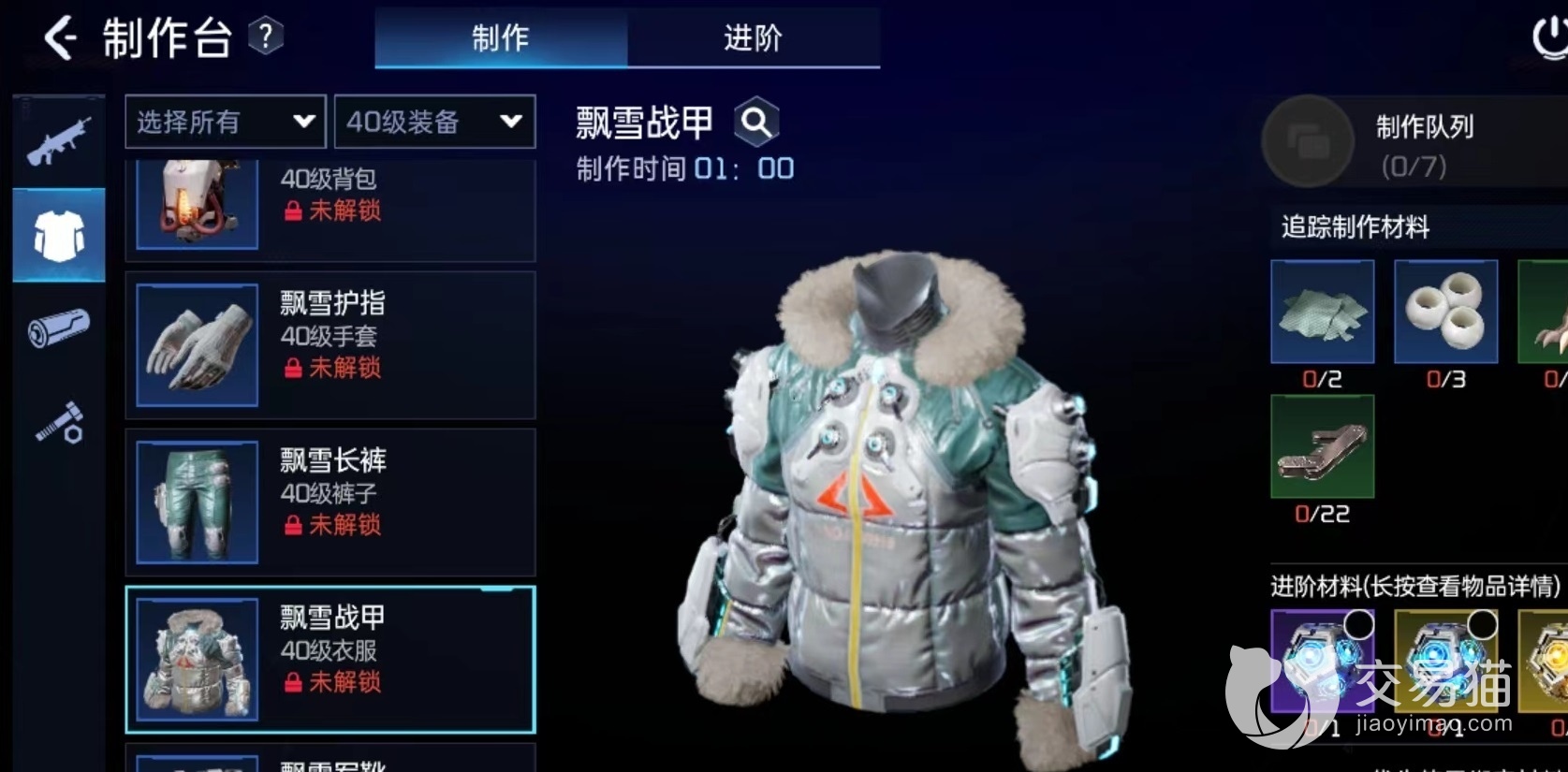 手套的制作材料有四块工程塑料,22个磁线圈,11个碎裂兽骨和2个混纺布,外观呈现白色,可以提高暴击率和攻击力,关节处进行了细节处理,是冬天御寒的绝佳单品。裤子主要的制作材料为22块工程铰链,4个工程塑料,11个碎裂兽骨,2个混纺布,不仅可以做到舒适贴身,而且还可以进行长时间保暖,能够提高防御护盾和生命值三方面加成,战甲和长裤的制作材料基本相同。