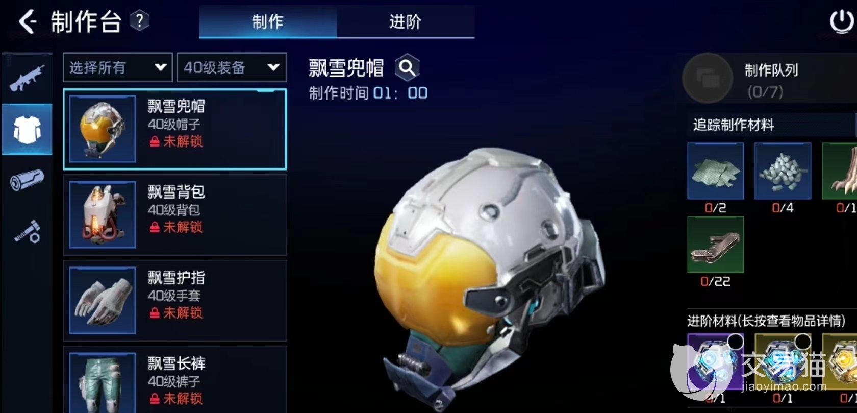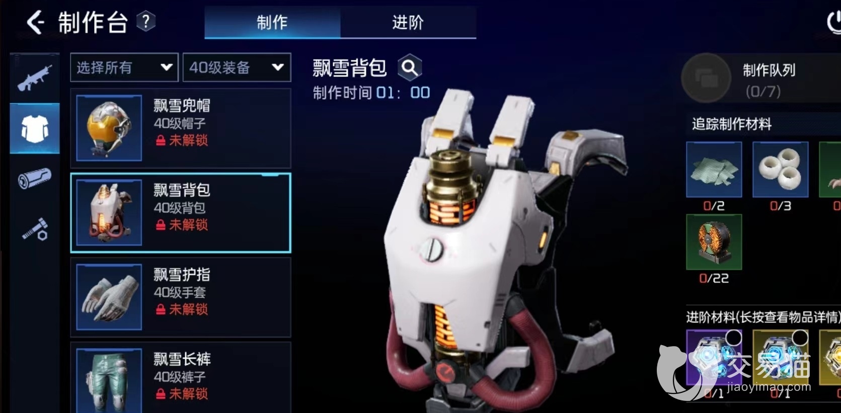 玩家可以在游戏前期进行资源收集,等达到40级之后就可以直接穿戴,大幅度提高战力。玩家在进行帽子的制作时需要用到,22个工程狡链,2个混纺布,11个碎裂兽骨,4个工程塑料,帽子可以为角色提供护盾和生命值加成。背包的制作材料主要有,3个工程陶瓷,22个磁线圈,11个碎裂兽骨和2个混纺布,背包也可以提高护盾和生命值加成,并且还可以扩充背包容量,这样可以装载更多的物品。