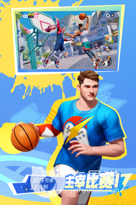 游戏介绍:游戏的对局规模比传统篮球赛事要小,每局只有六名玩家展开3v3对抗,在面积有限的半场中,各个球员都会施展自己的看家绝学,包括三分,扣篮和中投等等,它的比赛节奏非常之快,每场仅需达到十一分即可结束对局,非常适合在碎片化的空闲时间放松娱乐。