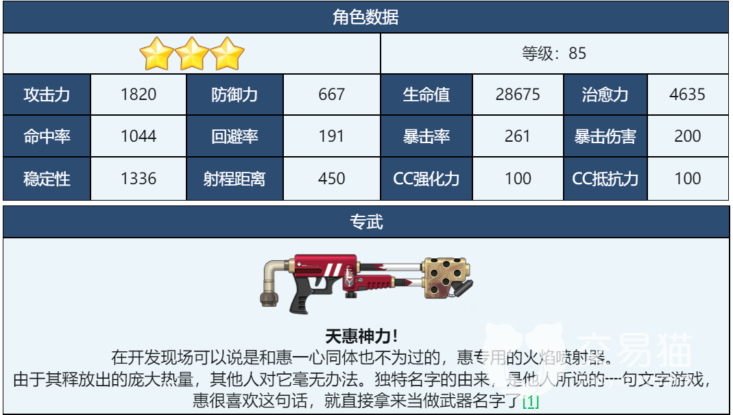 下仓惠的技能玩法主要是利用火焰喷射和火焰爆射来压制敌人。下仓惠需要注意控制好自己的距离和角度,避免被敌人包围或者反击应该把慧放在后排位置,让她在安全的距离内进行狙击,并且尽量保护她不受到敌人的攻击。