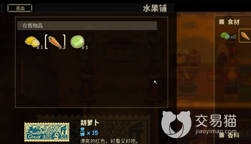 前期玩家开局资金有500块钱,通关序章迷宫之后,玩家会来到龙门集市,这里可以进货基础食材,比如胡萝卜、生菜、鱼肉等,价格在10块到40块。还有一个香料商人销售胡椒,不过前期不建议购买香料,因为香料100块钱一个,非常贵。