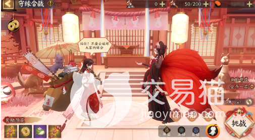 携带完成之后就可以进行提交,提交完成之后你就有概率遇到志同道合的玩家哦,然后是守缘合战,这是一个爬塔类型的小游戏,玩家在进入该游戏后会进入一个多层模式的关卡,这个关卡中有很多式神,大家需要挑战这些式神,挑战成功之后就可以获取奖励。