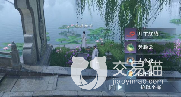 然后任务就接近尾声了,打败李兰月之后会有提示的,根据提示指引走到桥边上,桥边有一个白衣服的女子,跟这个白衣服的女孩子进行互动,跟她完成对话,对话之后就会获得系统给的奖励了,奖励当中就有月下红线这个道具。
