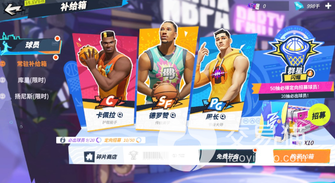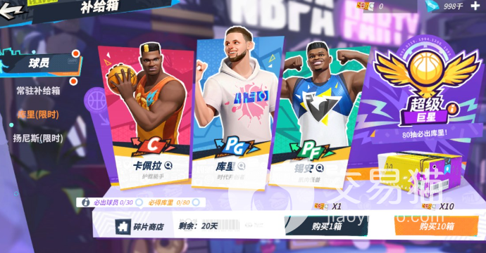 常驻卡池里每20抽会必定得到球员,但可能是A级的紫卡,50抽定向出的才是S级的橙卡。然后限定up卡池里出的是SS级的橙卡,就是那种属于巨星的球员,像是约基奇、字母哥、库里,以及后续会出的詹姆斯、大胡子等等。