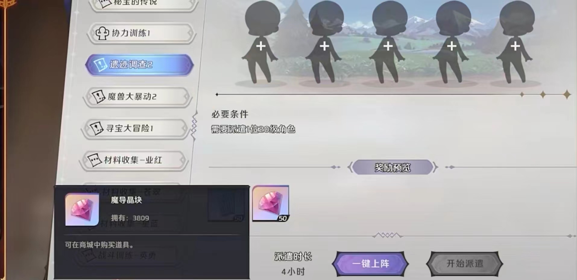 在等级达标之后该玩法就会开启,派遣玩法需要用到各种类型的角色,根据角色的定位来区分是否符合当前任务的派遣,玩法要求就是角色职业符合,例如骑士、战士、法师、游侠、祭司等等。