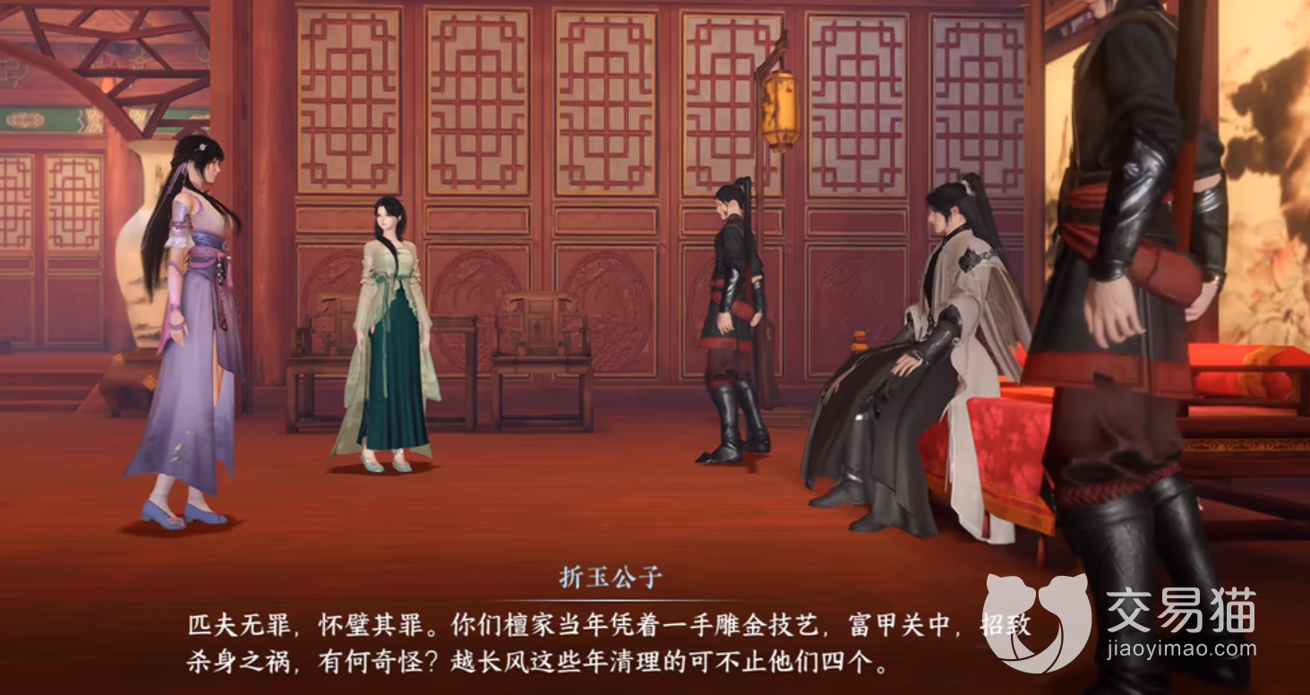之后触发折玉公子战斗关,这一场战斗是注定要输的,折玉公子临走前告诉玩家:尹啸天在墟城,触发下一步任务溯恩仇。帮檀沁报仇后,来到谪仙岛收回越长风的拂雪剑,悲痛欲绝的檀沁得知越长风已死,就在吟风崖自我了断。到此结局,玩家可拿到30绑定纹玉,两个紫色装备。