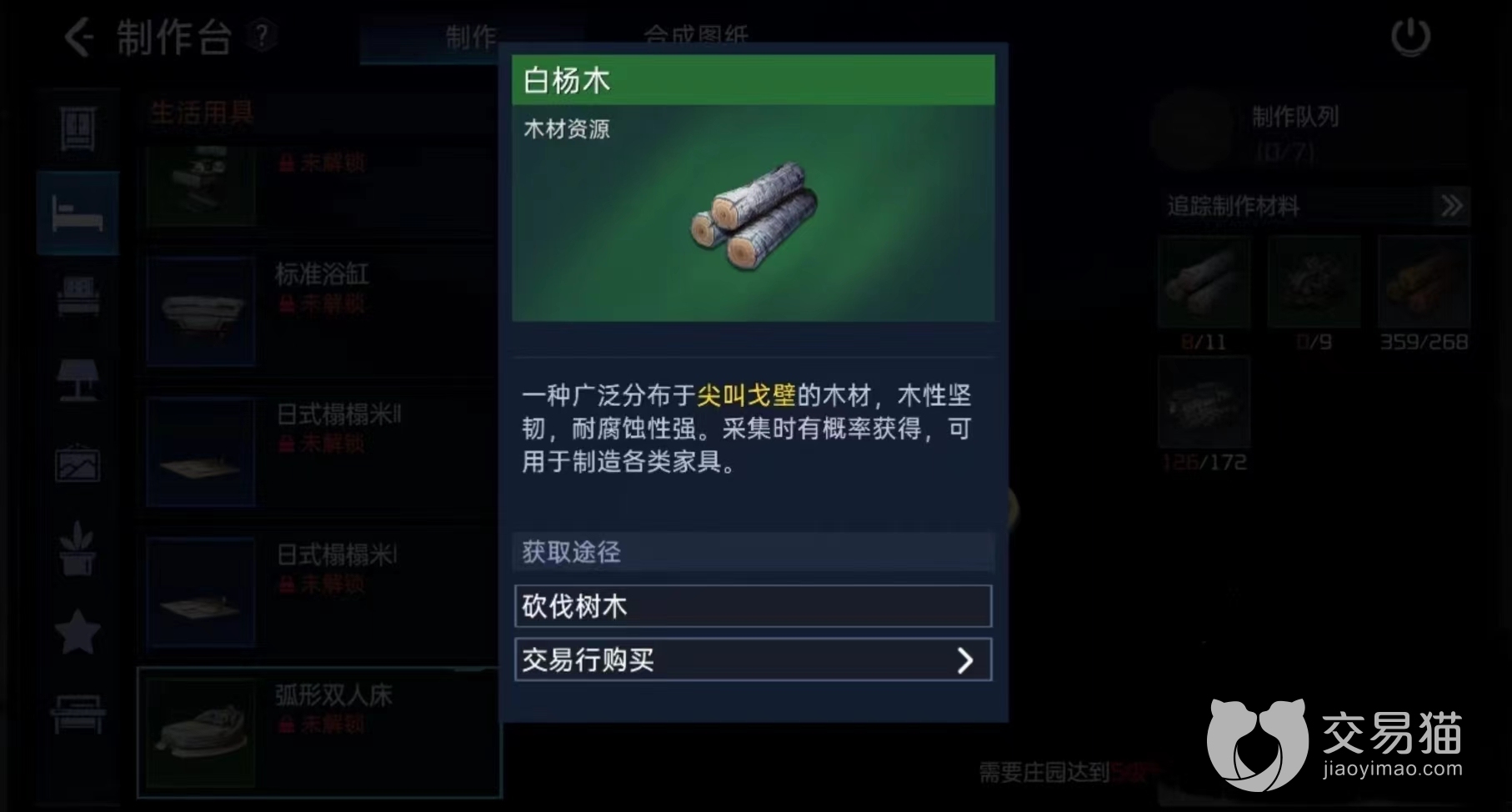 这里面的木材以及食材相信大家也都知道,都是普遍的资源,至于栾锰矿的话,确实是需要采集资源的时候才能获得的,而且是独有的矿产,所以获取的几率不高,然后就是白杨木也是需要玩家去采集资源才能够获得,但是这几种资源都不是什么特别难获取的,所以大家一定可以制作完成。