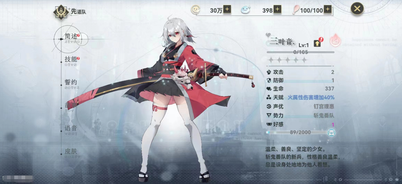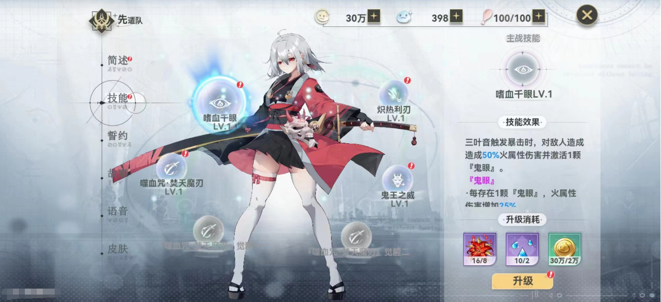 如果大家需要的是强攻角色,那么三叶音是大家不能替代的选择,这个角色在物理攻击以及技能上面的强度都算的上比较高的,使用三叶音的时候大家要利用好她的鬼眼,只要在输出的时候产生一次暴击,三叶音就会拥有一颗鬼眼,一颗鬼眼带来的效果就是伤害提升20%的效果。