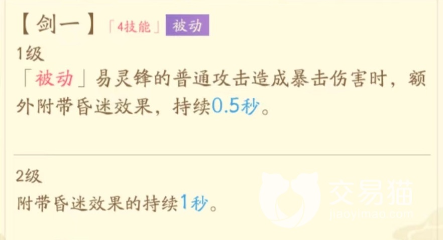 最后一个技能剑一,同样是被动效果,易灵锋普攻造成暴击伤害时额外附带昏迷,最多能持续1.5秒。这些技能效果就奠定了该角色在实战中的应用,就是依靠自己绝技造成秒杀,而没有绝技时候就利用被动带来各种效果起到摧毁对方护盾目的,同时也兼具一定控制能力。总体来说在各个方面比较全能,但依然走的是点杀路线,阵容搭配时尽量选择能够带来增益的辅助,以及群体伤害,为斩杀带来机会。