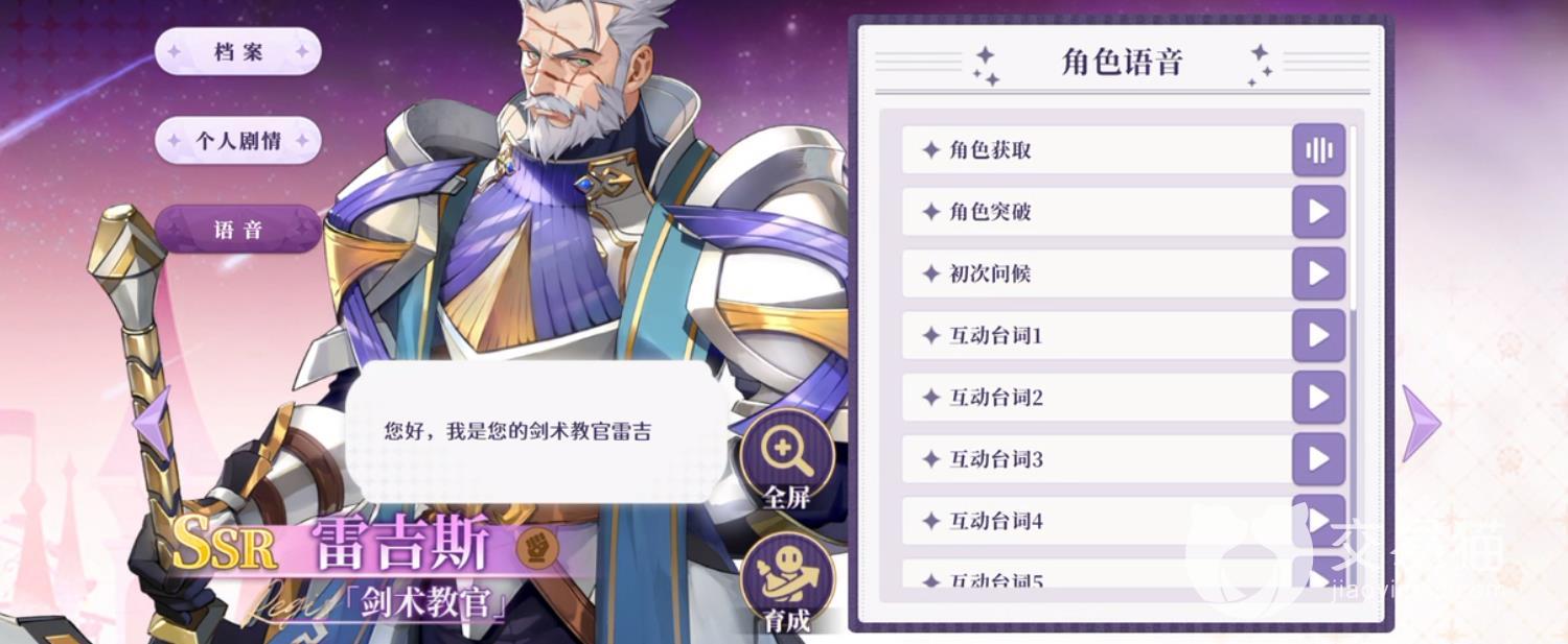 这个人物的专长是剑术,他将毕生精力都放在了这一点上,但是随着年纪越来越大,他也有了一个新的兴趣,便是编织,但他并不善于与人沟通,因为他总是作为导师,所以对于那些不争气的学生,他还是很有一套的。