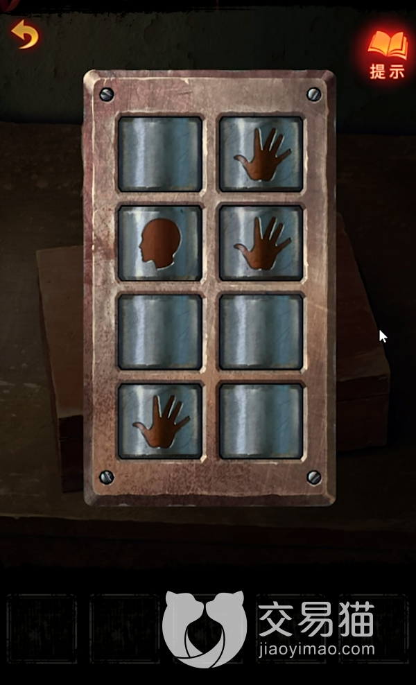 回到外面,把照片挂在墙壁上面,然后到左边的墙壁下面找到通风口使用书签打开通风口的栅栏,使用小陶俑让它自己进去可以得到一颗玻璃珠,回到刚刚出来的门口就可以将假眼睛和玻璃珠放进门口的脸谱面具里面,就可以获得一个门把手了,使用门把手打开门进入房间内进行探索,然后触发剧情进行谈话,发现同行好友是木偶人,根据场景内的线索解开木盒上的密码,从左往右,从上往下分别是:空白、头、空白、手、手、手、空白、空白。