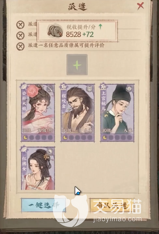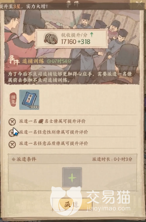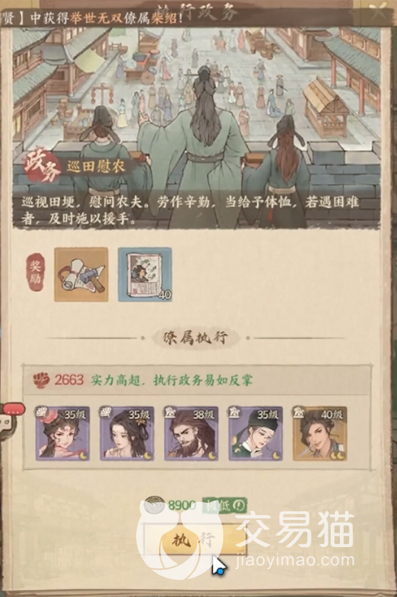 在游戏内相较于其他种田游戏而言,最有特点的就是政务升官系统了,玩家们解锁政务功能之后就可以通过招募获得的角色伙伴去参加每日的政务任务,每条任务使用任务相对应的人物角色可以提高任务的完成率和速度。