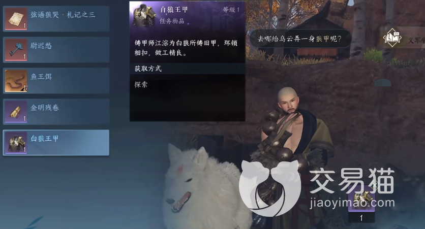 然后在上面将出现的狼王给击败,这样就可以获取宝物狼王甲,将琵琶跟甲衣一起给司马青衫,它会帮助大家修复这个狼王甲,随后在剧情里面遇到乌云白雪的时候,将这个修复好的甲衣给乌云白雪就可以了,这样最后的结局中乌云白雪有了外部的武装装备,就不会触发死亡的结局啦。
