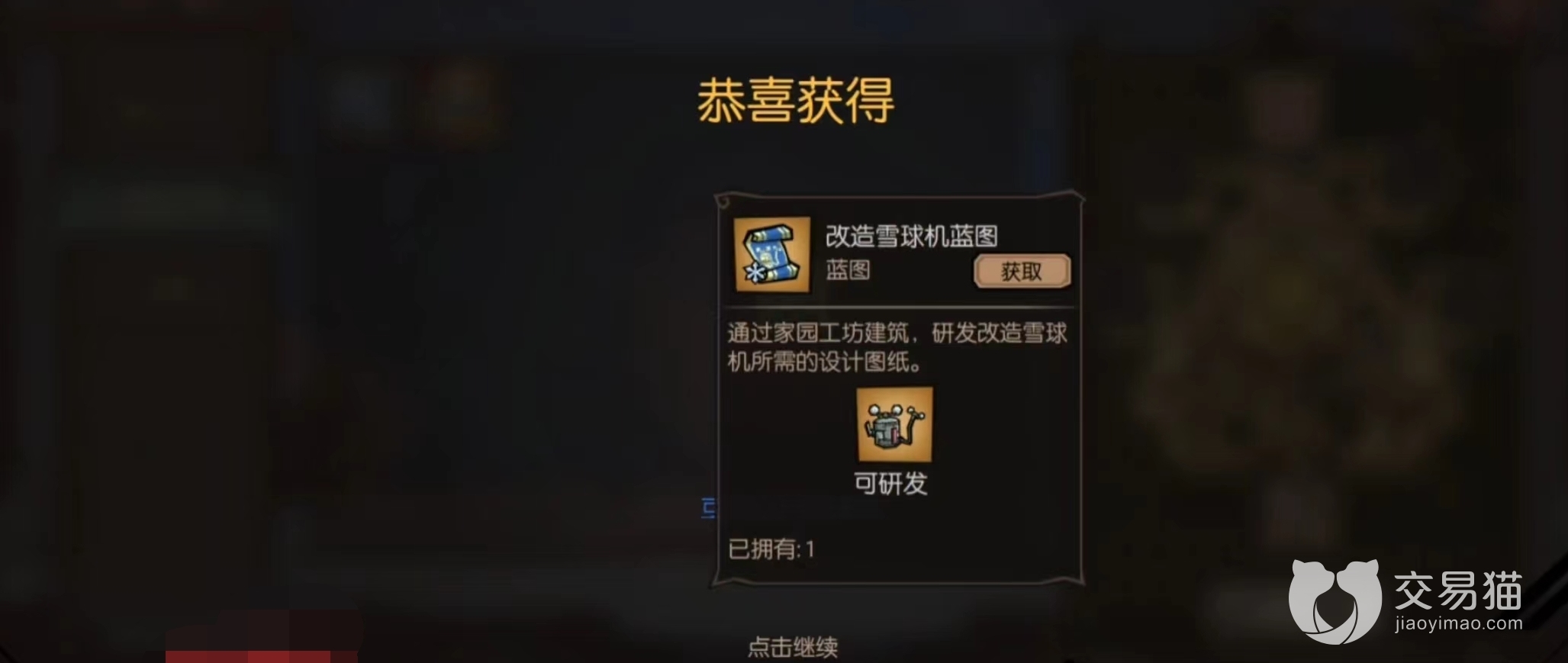 制作雪球机需要收集【改造雪球机蓝图】,图纸数量要达到10张才可以合成,合成后会得到提升雪球机工作效率的橙色制造图纸。在接着寻找【改造雪球机蓝图】需要的电子元件、齿轮和硬币这三个材料,材料的数量要够,才可成功的研发,游戏对获取的数量是有提示的。
