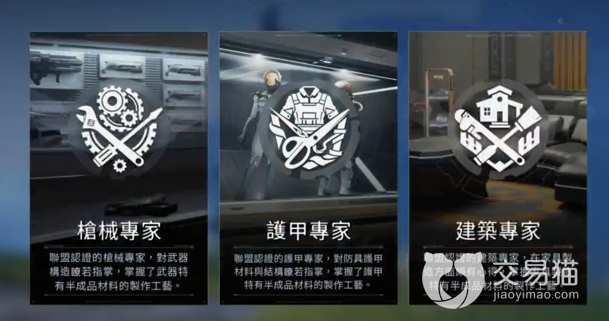 最后是三个制作类型的身份,这三个分别是枪械、护甲、建筑专家,关于这三个制作类身份的天赋,大家统一点减少制作的cd和减少制作所用的材料就行,这两个是必须点满的,剩下的那种有概率返还材料这种也是可以点的,但是不要重点加点,不要去用全部的天赋点去赌概率,不然是一定会后悔的。