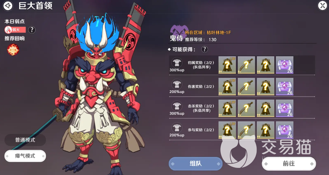 在游戏的设定中,巨大首领的难度分为普通和瘴气模式,其中后者的难度更高,而在击败以后获取的奖励也是更多的。