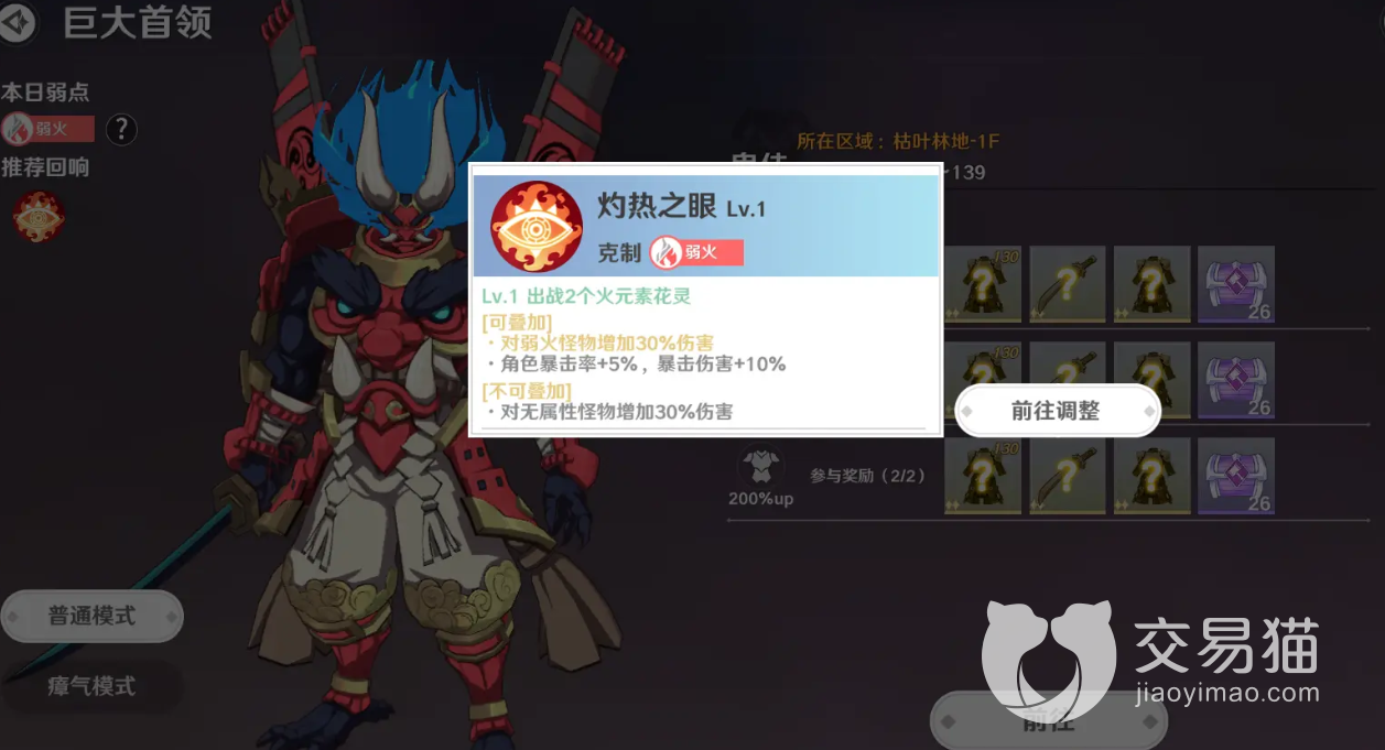 建议大家在进入战斗之前,可以去事先了解boss的弱点,然后根据首领的弱点来配置对应的花灵,比如首领弱水,就上水属性的花灵,这样就能提高对首领的伤害。