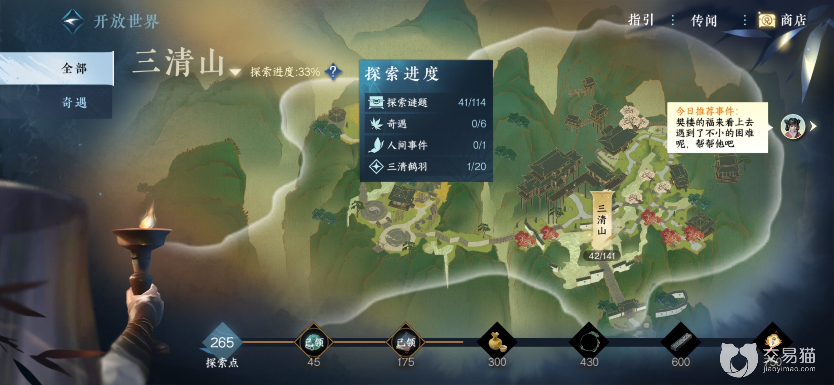 玩家会在三清山发现不少飞舞的萤火虫,靠近以后点击“捉光虫”,然后便可以靠近附近的石灯,系统便会自动将萤火虫放置到石灯之中,当附近的石灯都被点亮后,这一谜团也便完成了,随后便会有宝箱凭空出现,以此作为玩家的奖励。这类谜题,在三清山还存在不少,需要玩家仔细观察。