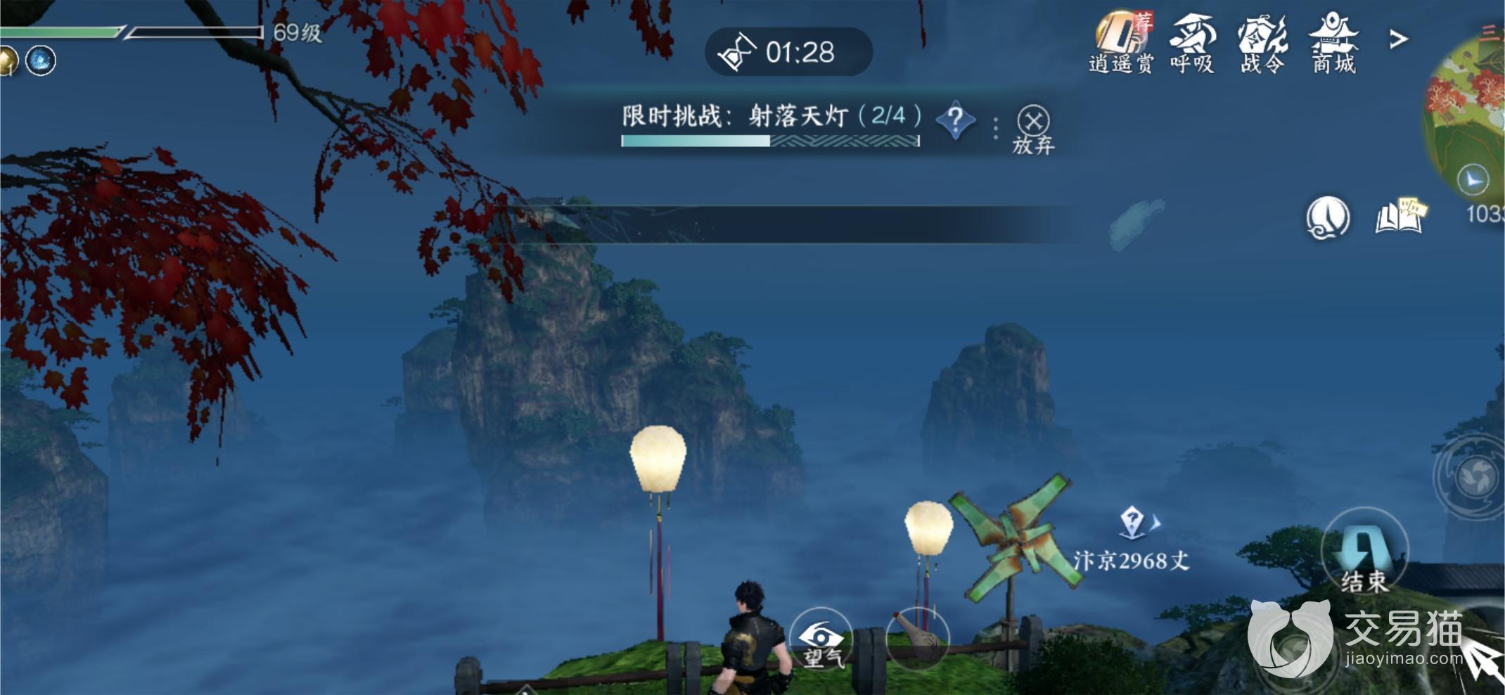 触发方式与上文一样,但是挑战方式却大相径庭,但也十分简单。挑战触发后,玩家的普通攻击将被替换为射击,通过瞄准面前的天灯,将其全部射落,便可以获取宝箱奖励。