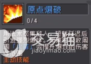 原点爆破,基于法术强度造成4倍的火焰伤害,是火焰术士伤害最高的技能,在释放后会将敌人聚集,并且经过短暂延迟后产生大爆炸。与此同时,之前技能产生的火苗便起了大作用,在聚集敌人的同时,也会吸收周围的火苗,进一步提升爆炸的范围与伤害。