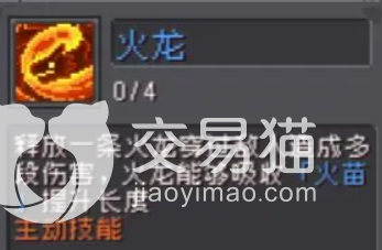 火龙,将火元素聚集,构造成龙的形状释放出来,从而穿过敌人来造成多端伤害,同时火龙可以吸收其余技能所产生的“火苗”,来提升技能的攻击距离,从而做到远距离打击。但由于技能是释放后会陷入12秒的冷却时间,所以需要把握好技能的释放。