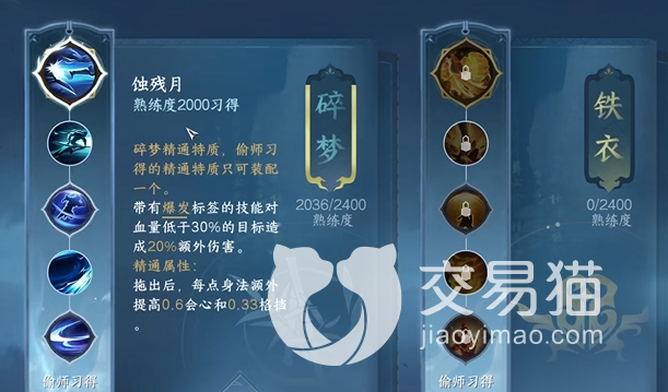 【碎梦】带有爆发标签的技能会对血量低于30%的敌人造成20%额外伤害。(蚀残月)