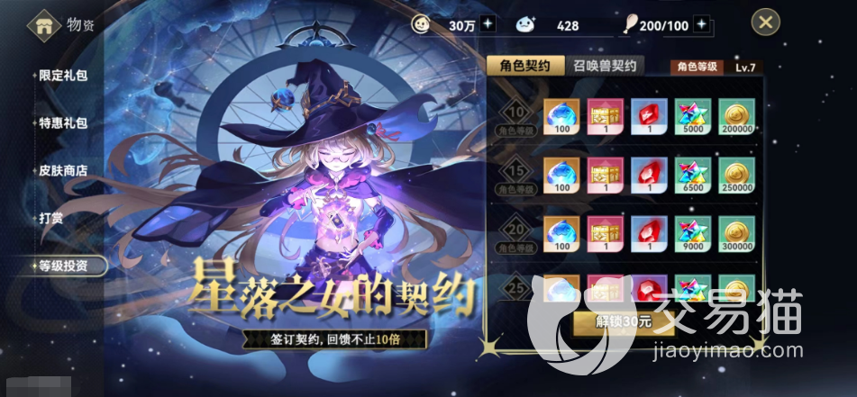 其次的话还有一个等级礼包,这个等级礼包它的价格稍微要比首充礼包要贵一点,这个等级礼包是需要30块钱的,但是其中里面的钻石返利的数量非常香,算是目前钻石数量的天花板,而且还有大量的经验奖励以及金币可以获取,买完这个礼包之后大家后期可以不用去重复的刷那些副本,而且在返利上面可以说是所有的礼包里面给到最性价比最高的一个,大家要是氪金的话这个礼包跟首冲是闭眼买的。