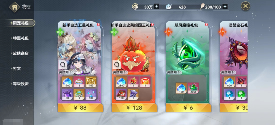 战令礼包的话性价比还比较高,其中大量的材料可以帮助大家节省时间,在效果上面其实就跟128的礼包有点重合了,所以大家依旧是看自己情况选择要不要购买,大家如果还有买了永久卡以后还有额外的能力可以再买一个永新手自选五星礼包,因为在史莱姆与地下城里面大家去通过各种方式成长都需要搭配阵容,阵容里面的史莱姆在游戏中最好的就是五星史莱姆了,而五星的史莱姆抽肯定是不好抽的,那么这个自选礼包大家可以在里面获取100抽以及自选五星史莱姆,后期的话只要大家购买其他几个资源礼包,养成起来是非常简单的。