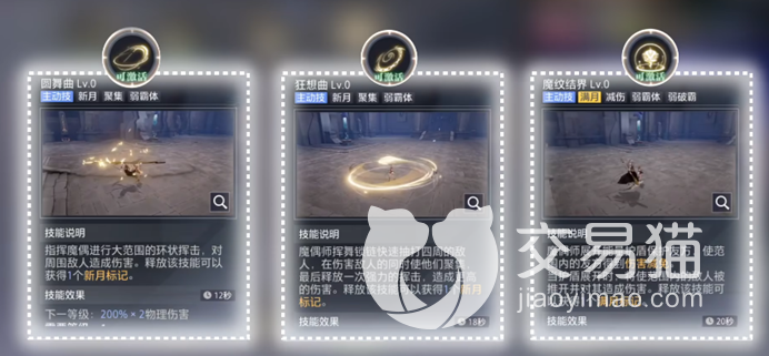 最后两个技能为狂想曲与利刃狂舞技能,利刃狂舞技能释放速度快,可以用于快速打出爆发。狂想曲技能可再次提升剑侍的对群能力,并且伤害整体更高。
