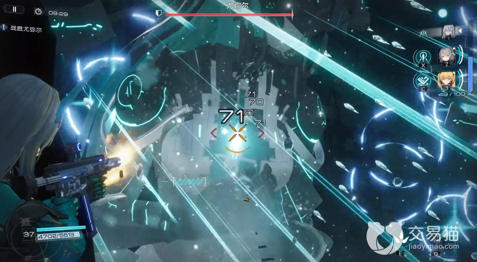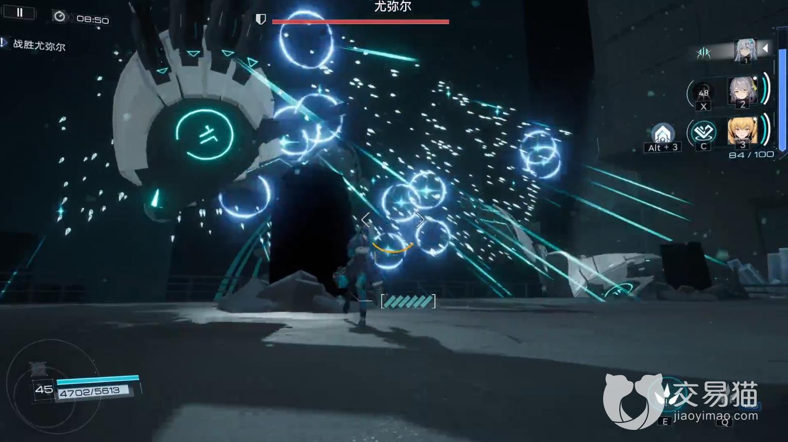 小房子都全部可以挡掉,像这个其实我们走到房子后面,根本他射不过来,就算瞄准了我们,他也会射到那个上面。这里他伸这个手指是要放这个地面AOE,同样的我们可以用无敌针给躲掉,注意地上的那个圈在他离那个要快要释放。边缘有大概平幕一厘米左右那种感觉,你就直接可以提前闪避了,因为我们无敌针真的很长,就是站在这里对他的胸口输出,就算他双手捂在胸口前面,我们也是可以打到他的。我们就这样慢慢耗着打死他就好了。
