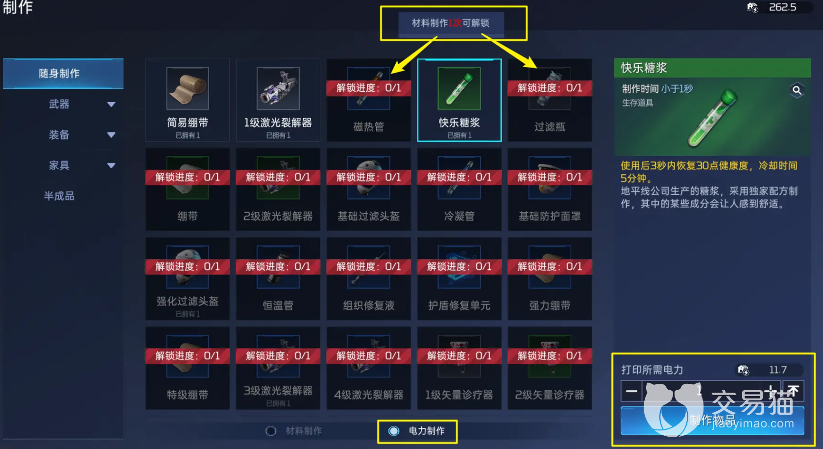 另外,也是我们随身制作必需的物品。像我们在制作一些生存装备工具,包括血包、基础材料、面具等等的时候,都可以消耗电力来制作出所需的材料。毕竟,作为近未来科技的3d打印技术,只要有电都可以制作出所需的物品。甚至于我们的载具都可以通过该技术随时随地的打印出来,前提是只要有电。